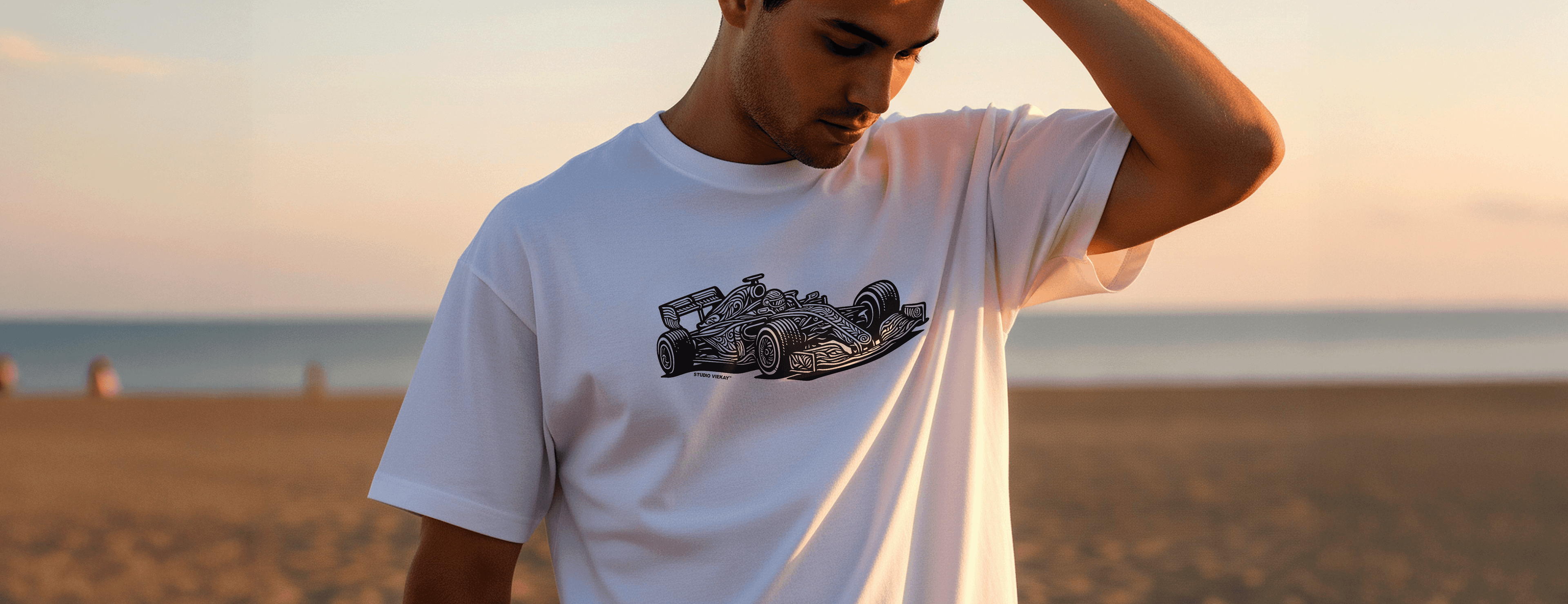Built for presence with bold oversized fit and sculpted black and white artwork